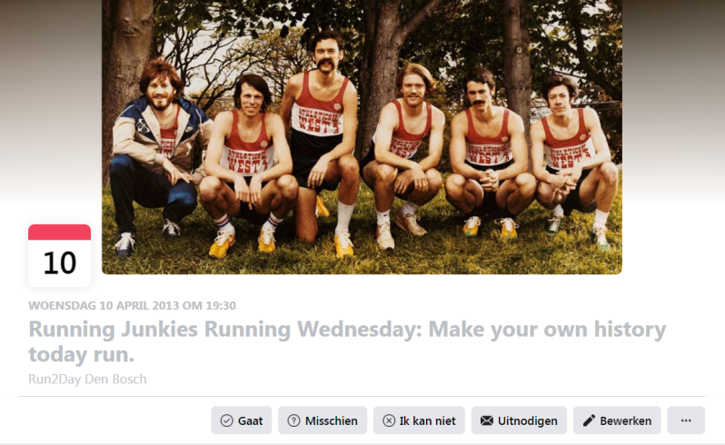 Nu rennen we elke woensdagavond een rondje door onze mooie stad. Met drie verschillende loopgroepen is er voor elk niveau een passende uitdaging. Na afloop is er natuurlijk een gezellige borrel om ervaringen uit te wisselen.